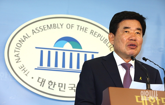 14일 오후, 서울 여의도 국회에서 새정치민주연합 김진표 의원이 6·4지방선거 경기도지사 후보등록을 위한 국회의원직 사퇴 기자회견을 갖고 있다.