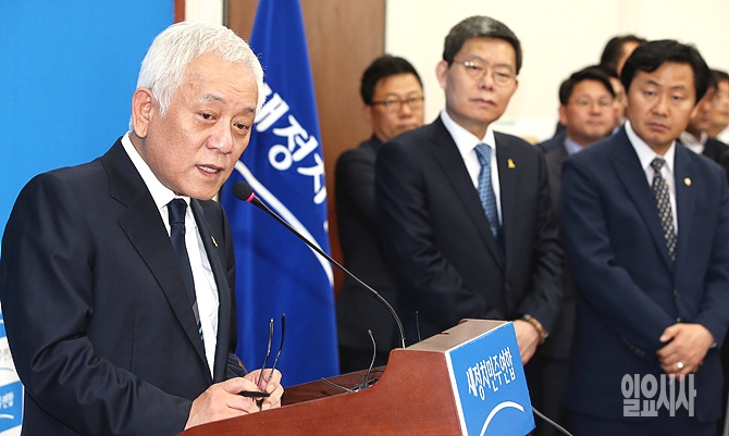 19일, 김한길 새정치민주연합 공동대표가 국회에서 이날 오전에 있었던 박근혜 대통령의 세월호 대국민 담화와 관련해 기자회견하고 있다.