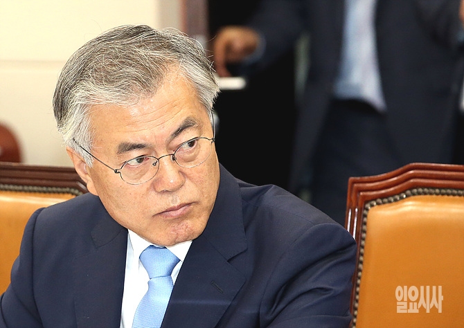 19일, 현오석 기획재정부 장관이 세월호 관련 기재위 전체회의에 출석해 의원들의 질문에 답변하고 있는 가운데 새정치민주연합 문재인 의원이 귀기울여 경청하고 있다.