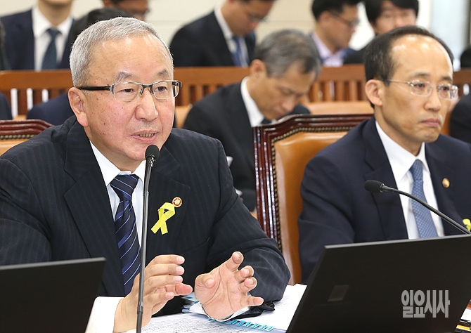 19일, 현오석 기획재정부 장관이 세월호 관련 기재위 전체회의에 출석해 의원들의 질문에 답변하고 있다.