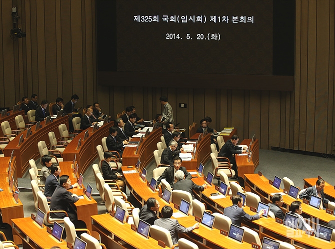 20일, 서울 여의도 국회 본회의장에서 세월호 침몰사고 긴급현안질문본회의가 개의되고 있다.