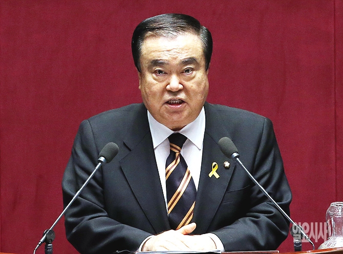 새정치민주연합 문희상 의원이 20일, 서울 여의도 국회 본회의장에서 열린 세월호 침몰사고 긴급현안질문에서 발언하고 있다.