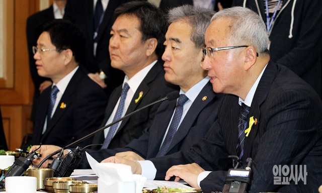 현오석 부총리 겸 기획재정부 장관(맨 오른쪽)이 21일 서울 여의도 국회 귀빈식당에서 열린 민생경제활성화 당정협의회에서 모두발언을 하고 있다.