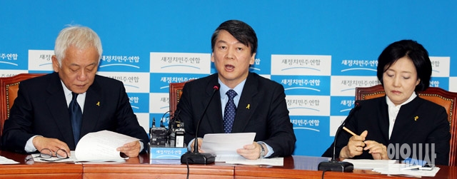 안철수 새정치민주연합 공동대표(가운데)가 21일 서울 여의도 국회에서 열린 전국 시도당위원장 연석회의에서 모두발언을 하고 있다.