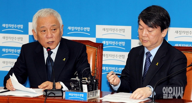 김한길 새정치민주연합 공동대표(왼쪽)가 21일 서울 여의도 국회에서 열린 전국 시도당위원장 연석회의에서 모두발언을 하고 있다.