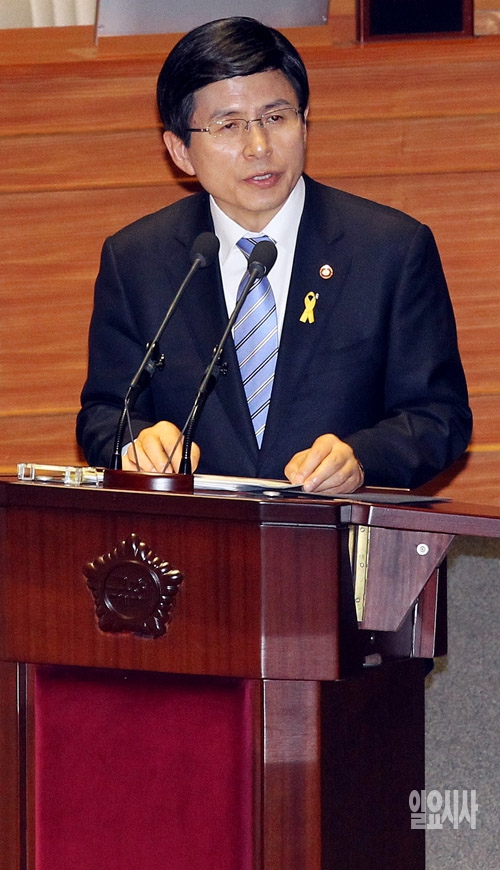 황교안 법무부 장관이 21일 서울 여의도 국회에서 열린 본회의에서 의원들의 세월호 침몰사고에 대한 긴급현안질문에 답하고 있다.