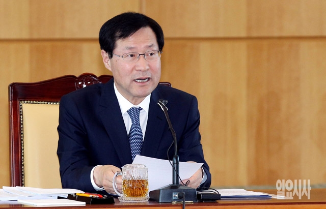 김진태 검찰총장이 21일 서울 서초동 대검찰청에서 열린 이른바 '관피아'로 불리는 민·관 유착 비리 척결을 위한 전국 검사장 회의에서 모두발언을 하고 있다.