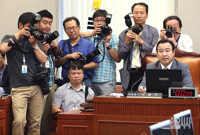 16일 오전 서울 여의도 국회 운영위원장실에서 열린 운영위 회의에서 이완구 운영위원장 근처에 취재진이 몰려 있다.