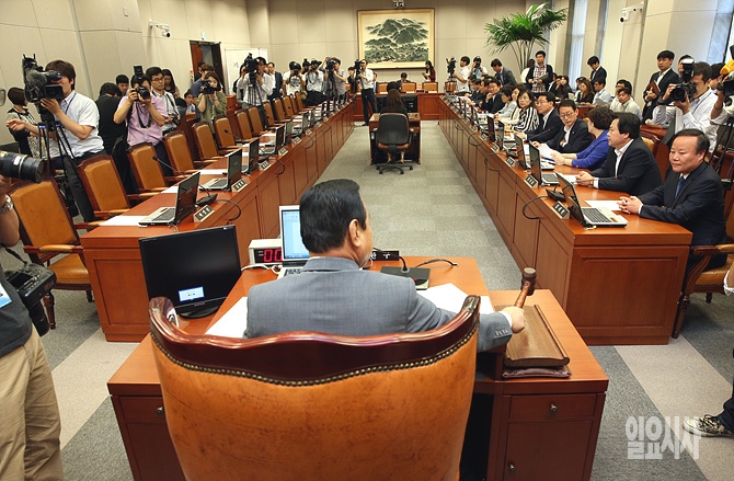 16일 오전 서울 여의도 국회 운영위원장실에서 열린 운영위 회의에서 이완구 운영위원장이 의사일정을 상정하고 있다.