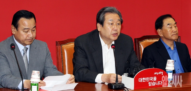 김무성 새누리당 대표(가운데)가 17일 서울 여의도 국회에서 열린 최고중진연석회의에서 모두발언을 하고 있다.