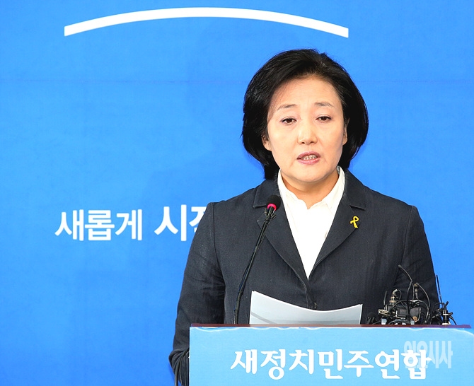 17일, 서울 여의도 국회에서 '탈당 논란'에 휩싸였던 박영선 새정치민주연합 국민공감혁신위원장 겸 원내대표가 나흘 만의 칩거 끝에 복귀 기자회견을 갖고 있다.