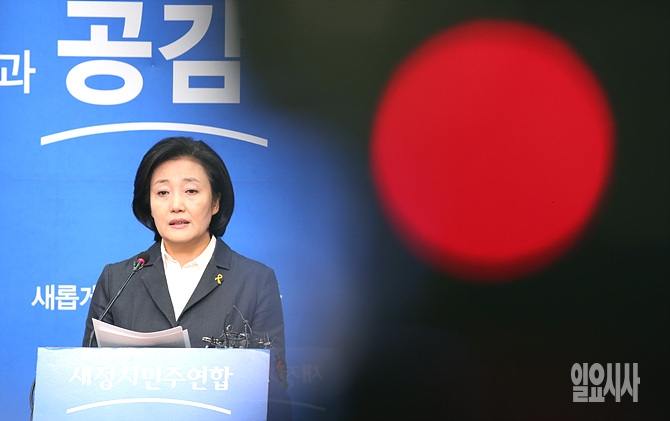 17일, 서울 여의도 국회에서 '탈당 논란'에 휩싸였던 박영선 새정치민주연합 국민공감혁신위원장 겸 원내대표가 나흘 만의 칩거 끝에 복귀 기자회견을 갖고 있다.
