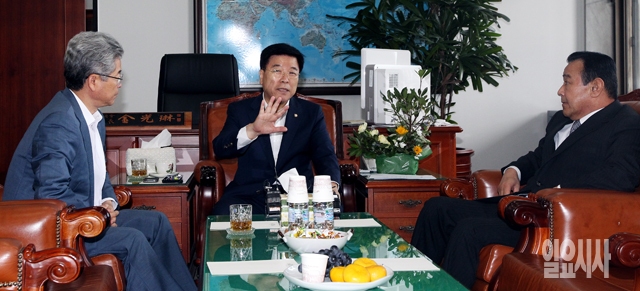 18일 서울 여의도 국회 정보위원장실에서 열린 정보위 간담회에서 이철우 여당 간사(왼쪽부터), 김광림 위원장, 이완구 새누리당 원내대표가 대화하고 있다.