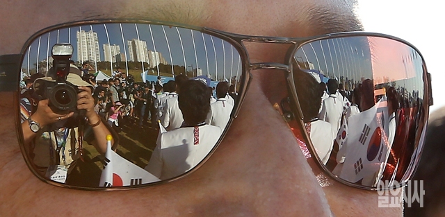 한국선수단이 18일 인천 구월아시아드선수촌 국기광장에서 2014 인천아시아경기대회 선수촌 입촌식을 갖고 있다.