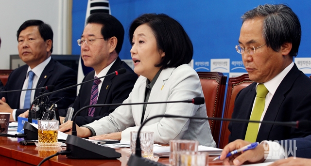 박영선 새정치민주연합 국민공감혁신위원장이 19일 서울 여의도 국회에서 열린 원내대책회의에서 모두발언을 하고 있다.