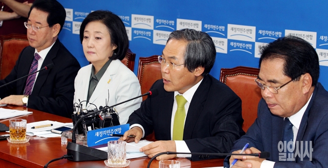 우윤근 새정치민주연합 정책위의장이 19일 서울 여의도 국회에서 열린 원내대책회의에서 모두발언을 하고 있다.
