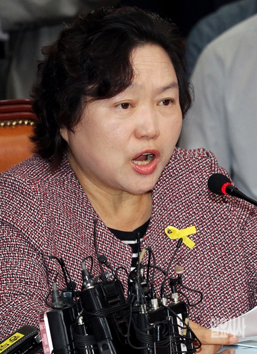 인재근 새정치민주연합 비대위원이 22일 서울 여의도 국회에서 열린 제1차 비상대책위원회 회의에서 모두발언을 하고 있다.