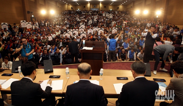 [포토] 토론회 중단 요구하는 공무원노조