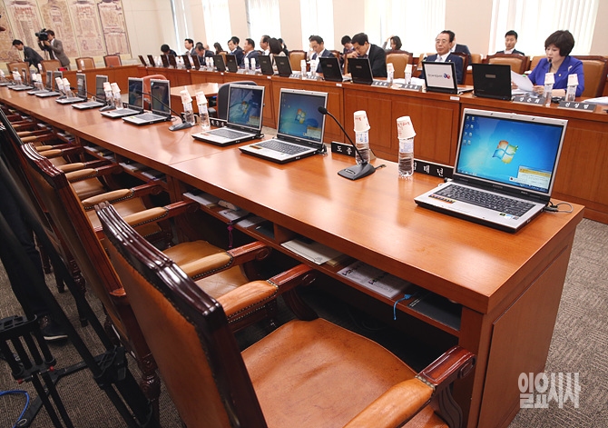 22일 오전, 새누리당의 요청으로 서울 여의도 국회 교육문화체육관광위원회 전체회의가 열린 교문위 회의실에 새누리당 의원들만 참석해 있다.