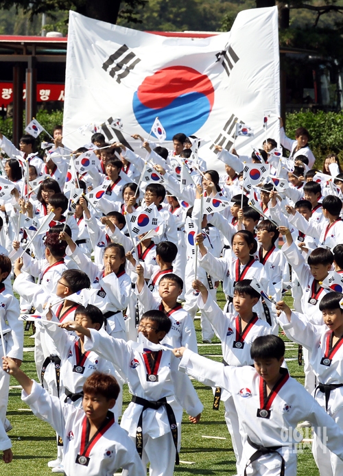 [포토] 태극기 흔드는 태권도 꿈나무들