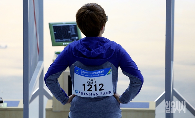 22일 인천 옥련국제사격장에서 열린 2014 인천 아시안게임 사격 여자 25m 권총 개인전에서 김장미 선수가 메달 결정전에 못오르자 아쉬워 하고 있다.