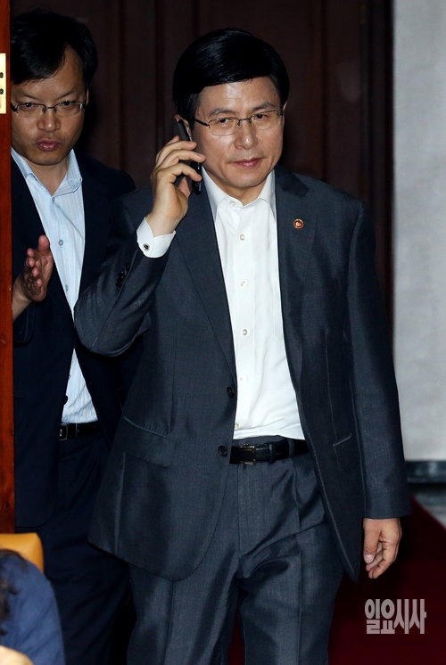 황교안 법무부 장관이 24일 서울 세종로 정부서울청사에서 열린 경제관계장관회의에 참석하고 있다.