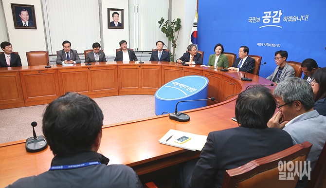 23일 오후, 서울 여의도 국회 새정치민주연합 당대표실에서 신임 세월호가족대책위원회 지도부가 문희상 비상대책위원장과 면담을 하고 있다.