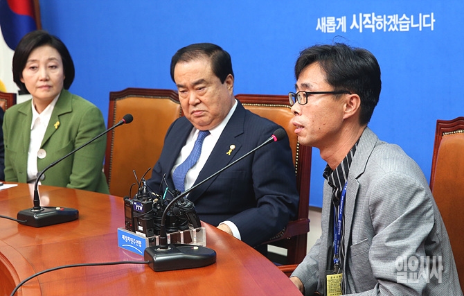 23일 오후, 서울 여의도 국회 새정치민주연합 당대표실에서 신임 세월호가족대책위원회 지도부가 문희상 비상대책위원장과 면담을 하고 있는 가운데, 문 비대위원장이 잠시 고민에 빠져 있다.