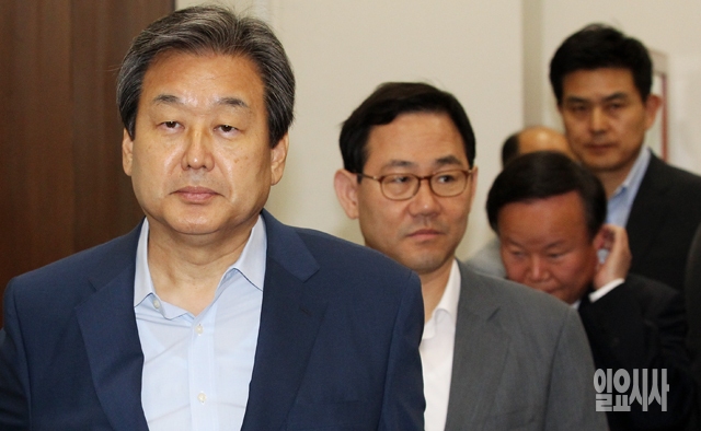 새누리당 김무성 대표와 지도부들이 25일 서울 여의도 국회에서 열린 최고위원회의에 참석하고 있다.