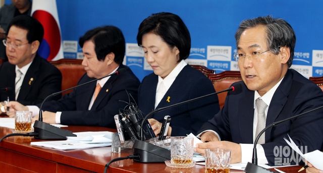 우윤근 새정치민주연합 정책위의장이 25일 서울 여의도 국회에서 열린 정책조정회의에서 모두발언을 하고 있다.