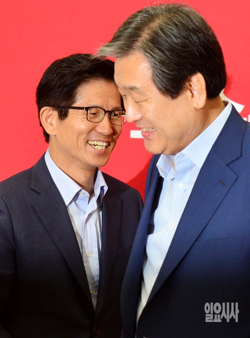 새누리당 김문수 보수혁신위원장이 25일 서울 여의도 국회에서 열린 최고위원회의에 참석하고 있다. 오른쪽은 김무성 대표.