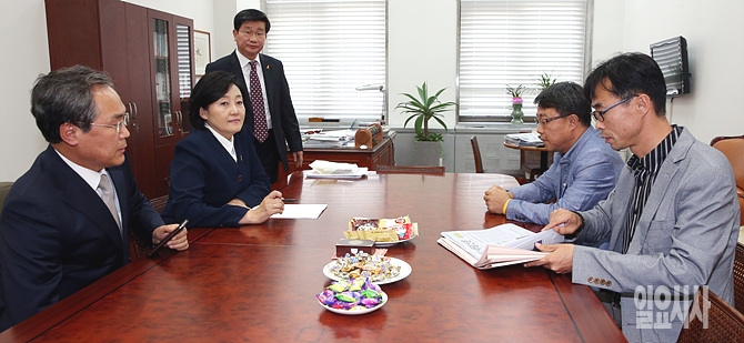 25일 오후, 서울 여의도 국회에서 박영선 새정치민주연합 원내대표와 전명선 신임 세월호가족 대책위원장 등이 면담을 갖고 있다.