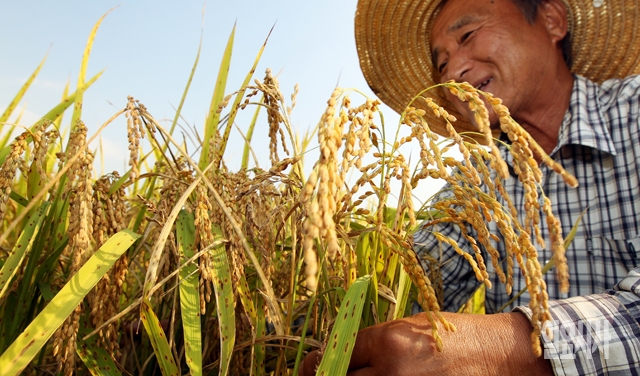 수확의 계절인 가을이 왔다. 25일 경기 고양에 위치한 논에서 한 농부가 누렇게 익은 벼를 바라보며 수확의 기쁨에 흠뻑 잠겨있다.