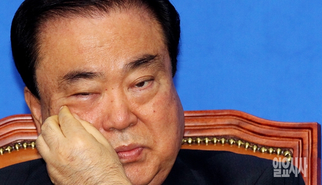 새정치민주연합 문희상 비상대책위원장이 26일 서울 여의도 국회에서 열린 비대위원회의에 참석해 눈가를 만지고 있다.