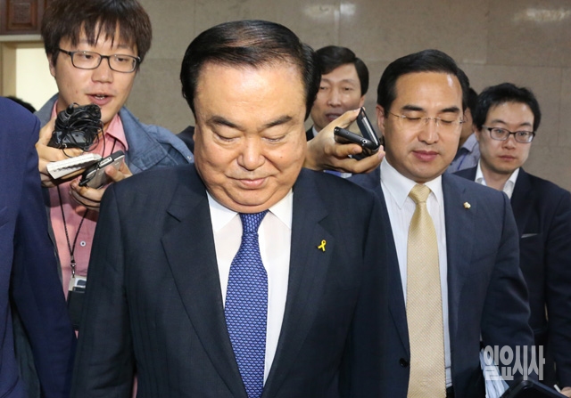 새정치민주연합 문희상 비상대책위원장이 26일 서울 여의도 국회의장실에서 정의화 국회의장과 면담을 마치고 나오고 있다.