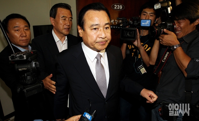 새누리당 이완구 원내대표가 26일 서울 여의도 국회에서 열린 긴급 의원총회에서 사퇴 의사를 밝히고 원내대표실로 향하고 있다.