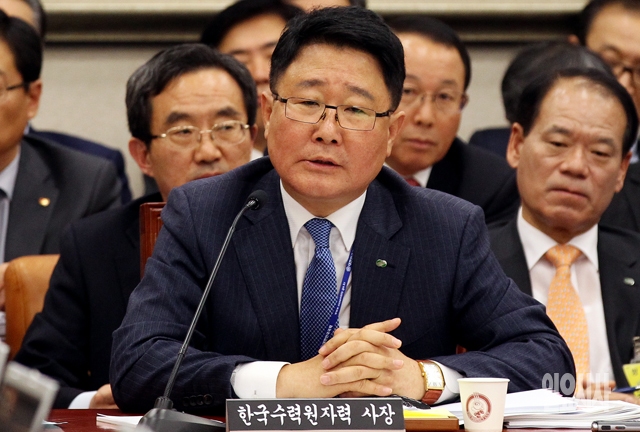 조석 한국수력원자력 사장이 17일 서울 여의도 국회에서 열린 산업통상자원위원회의 국정감사에서 의원들의 질의에 답하고 있다.
