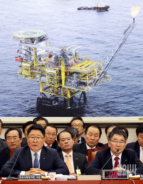 조석 한국수력원자력 사장(왼쪽)이 17일 서울 여의도 국회에서 열린 산업통상자원위원회의 국정감사에서 의원들의 질의에 답하고 있다.