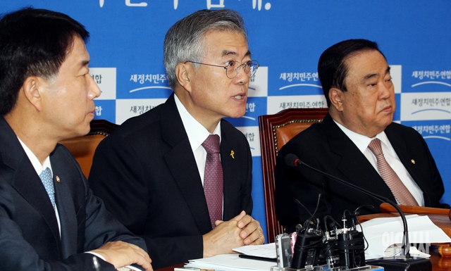 새정치민주연합 문재인 비대위원(가운데)이 20일 서울 여의도 국회에서 열린 비상대책위원회의에서 모두발언을 하고 있다.