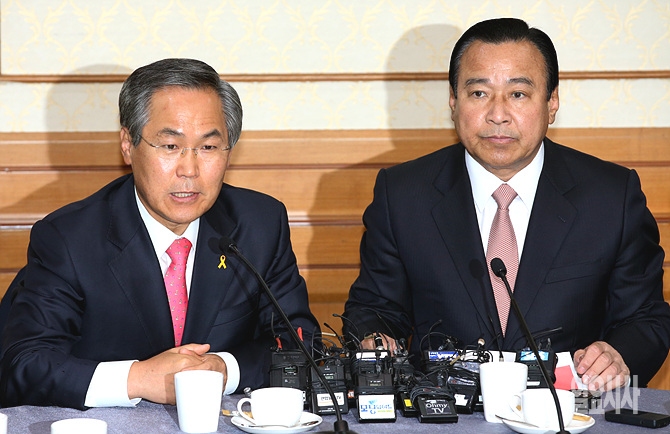 21일, 서울 여의도 국회에서 새누리당 이완구·새정치민주연합 우윤근 여야 원내대표 등 원내대표단이 회동을 갖고 있는 가운데, 우 원내대표가 발언하고 있다.