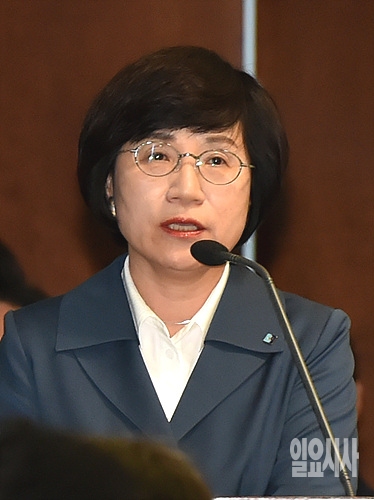 21일, 서울 여의도 국회 정무위원회 회의실에서 열린 정무위 국정감사에서 권선주 기업은행장이 의원들의 질의에 답변하고 있다.