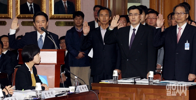 남경필 경기도지사가 22일 경기도 수원 경기도청에서 열린 국회 안전행정위원회의 국정감사에서 증인선서를 하고 있다.