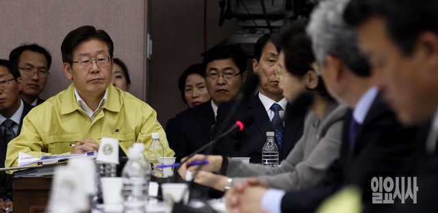 이재명 성남시장이 22일 경기도 수원 경기도청에서 열린 국회 안전행정위원회의 국정감사에서 의원들의 질의를 경청하고 있다.