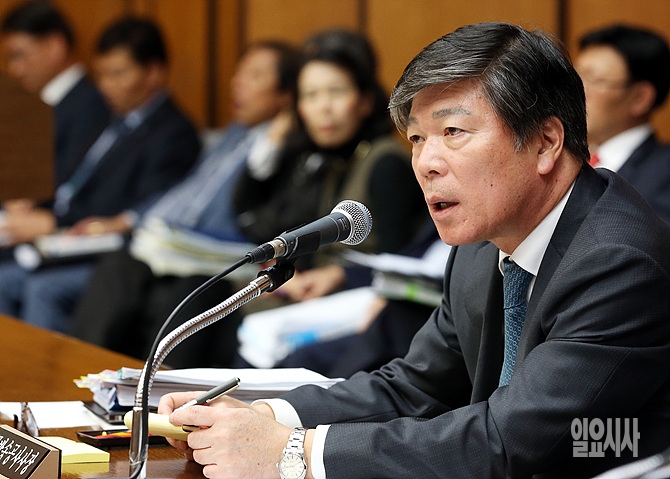 22일 오후, 서울 여의도 미래창조과학방송통신위원회 회의실에서 열린 KBS 등에 대한 국정감사에서 이날 증인으로 출석한 조대현 KBS 사장이 의원들의 질의에 답변하고 있다.