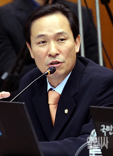 22일 오후, 서울 여의도 미래창조과학방송통신위원회 회의실에서 열린 KBS 등에 대한 국정감사에서 우상호 의원이 질의를 하고 있다.
