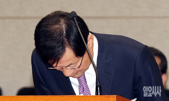김진태 검찰총장이 23일 서울 서초동 대검찰청에서 열린 국회 법제사법위원회의 국정감사에서 업무보고를 마친 뒤 인사하고 있다.