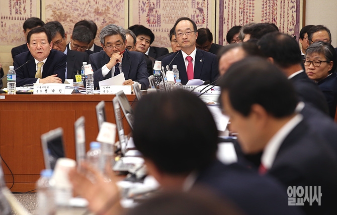 23일, 서울 여의도 국회 교육문화체육관광위원회 회의실에서 열린 국립대학 및 병원에 대한 국정감사에서 성낙인 서울대 총장이 의원들의 질의를 듣고 있다.