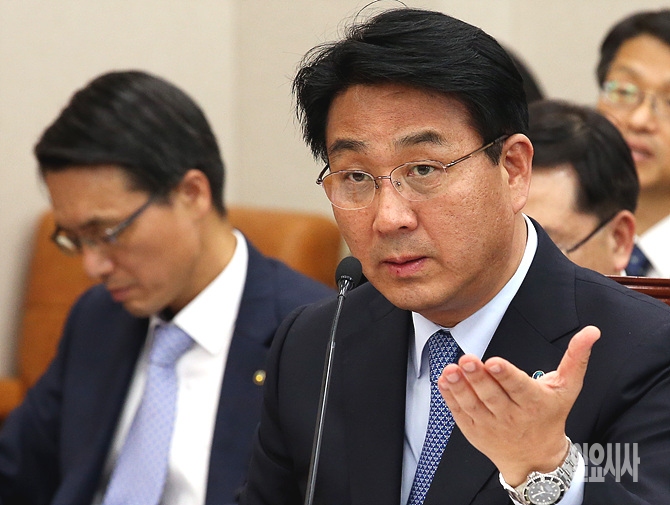 23일, 서울 여의도 국회 산업통상자원위원회 회의실에서 열린 한국석유·석탄공사 등에 대한 국정감사가 열린 가운데, 장석효 한국가스공사 사장이 의원들의 질의에 답변하고 있다.