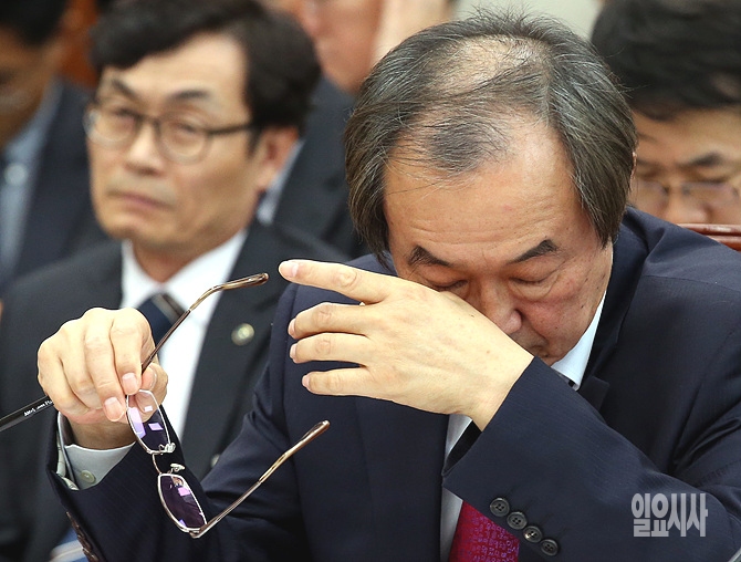 23일, 서울 여의도 국회 산업통상자원위원회 회의실에서 열린 한국석유·석탄공사 등에 대한 국정감사가 열린 가운데, 서문규 한국석탄공사 사장이 피곤한 듯 눈을 비비고 있다.