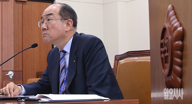 23일, 서울 여의도 국회 기획재정위원회 회의실에서 열린 은행들에 대한 국정감사 도중 이덕훈 한국수출입은행장이 의원들의 질의를 경청하고 있다.
